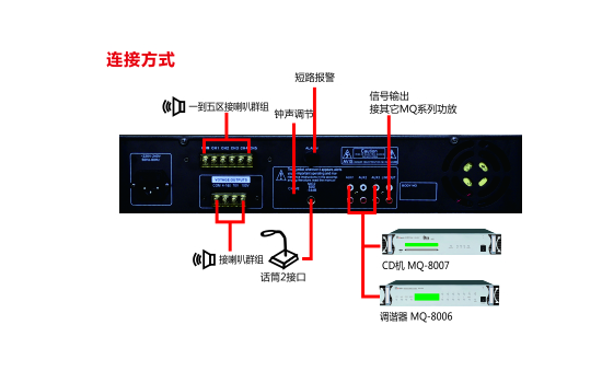 机器异常工作保护警告功能:当输入信号过大、负载过重、线路短路时,