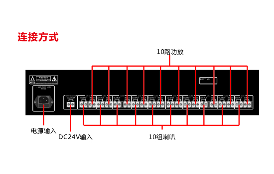 10路输入与10路输出,可以实现10路音源或者10个分区,取代传统